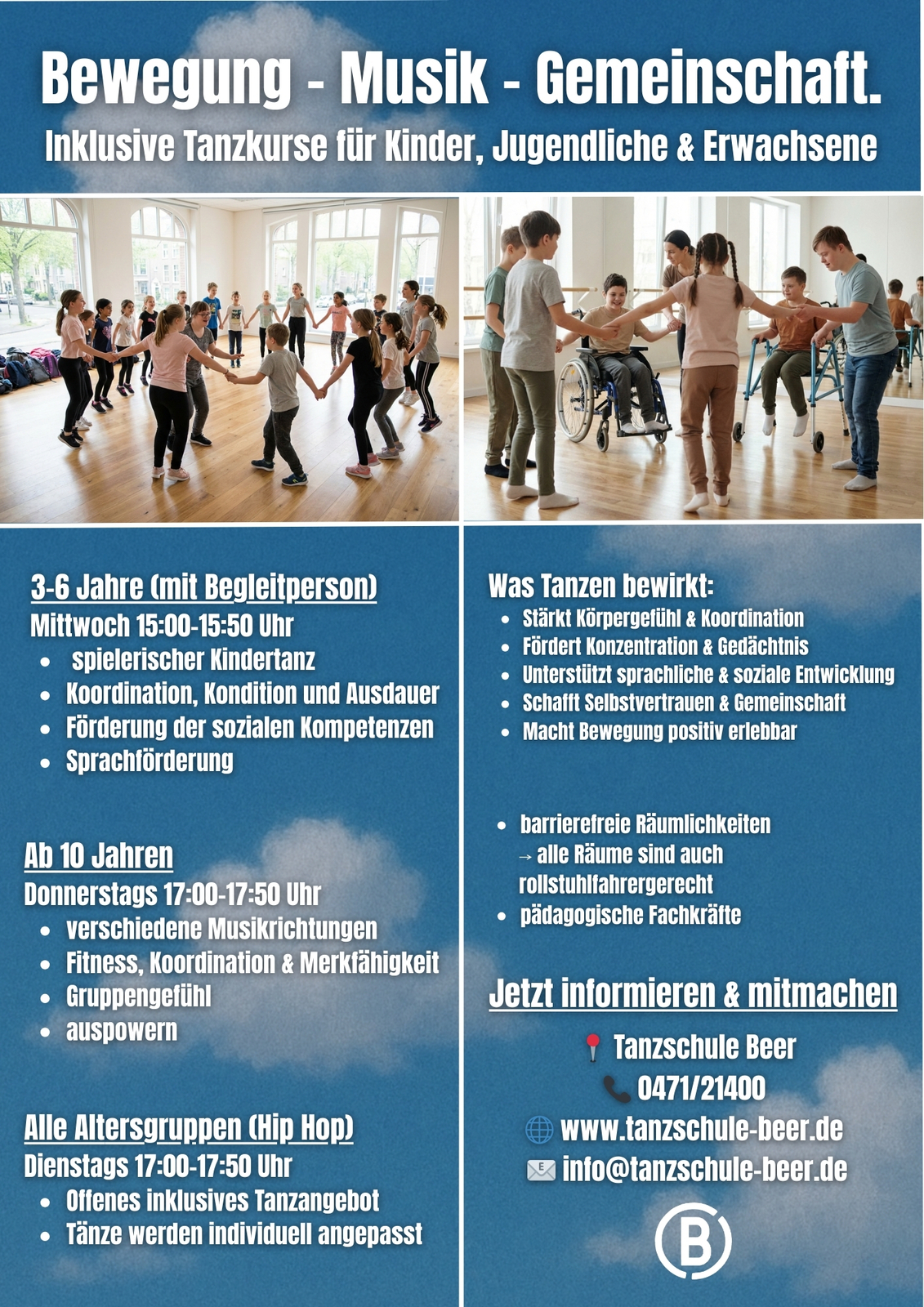 Schreibt uns gerne eine mail an info@tanzschule-beer.de und wir schauen gemeinsam mit euch, was möglich ist.
